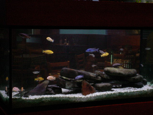 This is a freshwater African Cichlid aquarium. The fish have already produced several batches of young since being introduced to this aquarium.